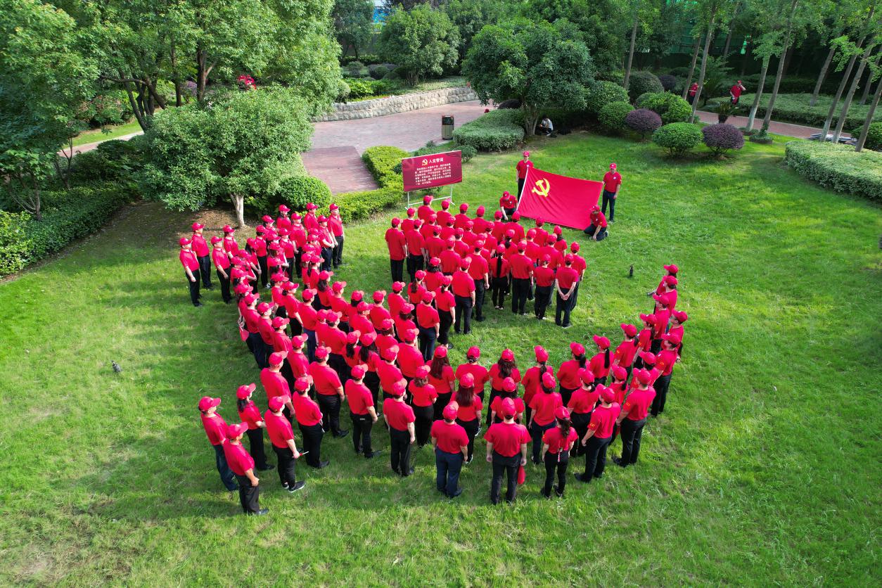 活動正式開始前,在場全體黨員、入黨積極分子精神抖擻、熱情高漲,在統(tǒng)一指揮下分別擺出黨徽、數(shù)字100和清能logo圖案,以“航拍造型”的特殊形式為黨送上最真摯的生日祝福。現(xiàn)場氣氛活躍熱烈,金色的黨徽在一團(tuán)紅色的簇?fù)硐拢邙B鳴笑語、碧草芬芳中迎著朝陽熠熠生輝,充分展現(xiàn)了清能人昂揚向上、愛黨敬業(yè)的良好精神風(fēng)貌。清能人以此誓言緊跟黨走,永遠(yuǎn)信黨愛黨。