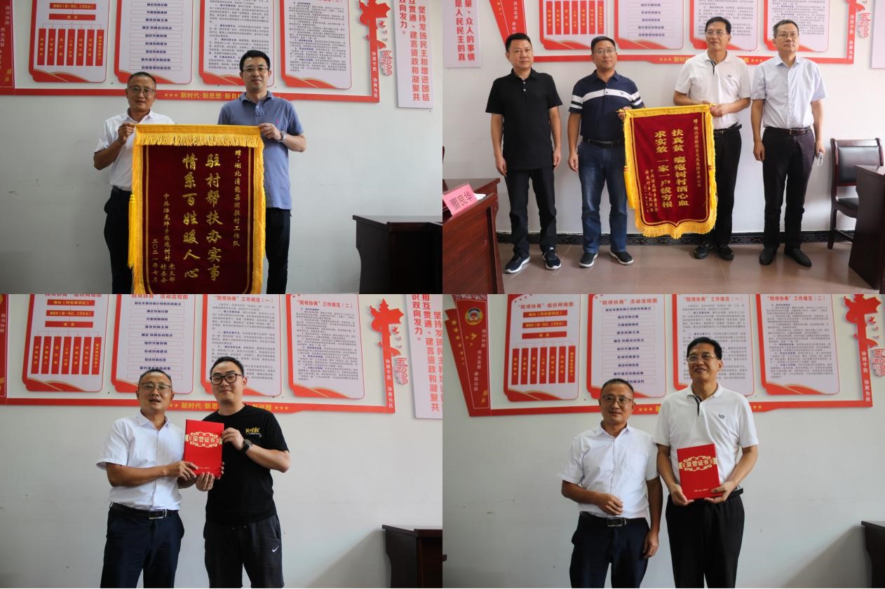 圖:鄉、村兩委向清能集團授予錦旗、頒發榮譽證書