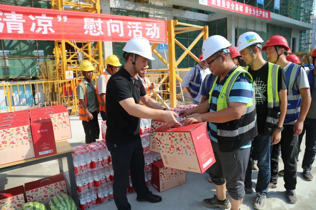 集團黨委班子成員分別走訪慰問了清江錦城項目、清能正榮府項目、清能龍湖天曜項目以及荊州學府花園項目,實地察看了項目施工現場,詢問了解了項目安全生產、勞動保護及防暑降溫工作情況,積極協調解決職工暑期生產生活方面的困難和問題,為項目一線職工送去西瓜、礦泉水、清涼禮包等防暑降溫物品,叮囑他們在做好本職工作的同時,注意高溫酷暑下的自我保護,把健康和安全生產放在第一位,以良好的精神狀態投入到工作中。