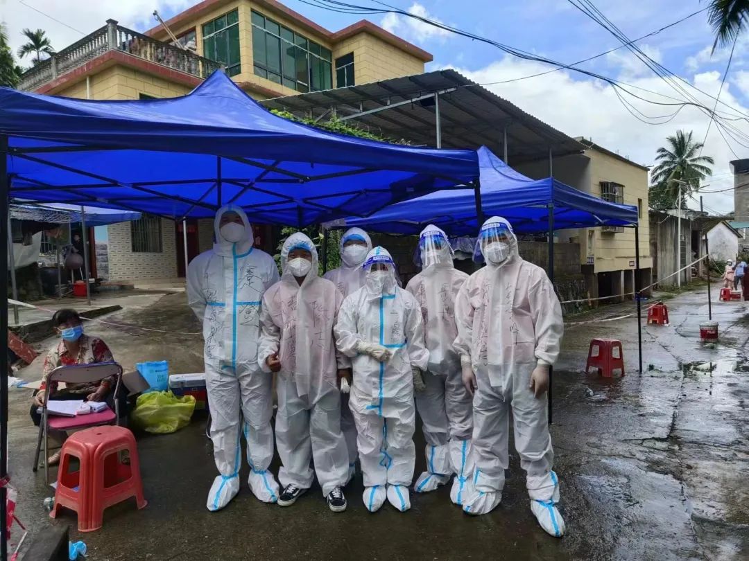 為精準助力五指山市新冠肺炎疫情聯防聯控工作,8月6日,五指山清能置業有限公司黨支部、工會、團支部發起《抗擊疫情 志愿同行——參加疫情防控志愿者倡議書》,大家積極踴躍報名,迅速組建了由20名共產黨員、共青團員組成的志愿服務隊。當疫情防控“集結號”吹響,“清能人”化身“志愿紅”,緊急馳援五指山市南圣鎮、通什鎮、暢好鄉等地,與醫護人員、鎮村干部一同做好疫情排查、防疫宣傳等工作,并高效完成近6000名群眾的核酸檢測任務。