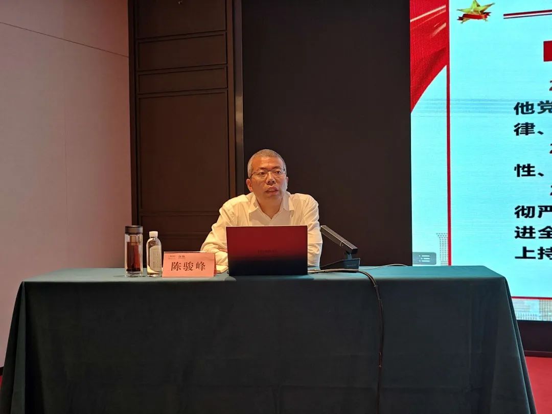 陳駿峰講授《深化黨紀學習 強化擔當作為》的紀律黨課,結合中國共產黨百年來紀律建設的成就經驗,圍繞理解“四個意義”、遵循“四個標準”、體現“四個成果”,提出黨員干部要提升遵規守紀的意識,在深刻把握中增強主動自覺,在學思踐悟中深化紀律教育,在結合轉化中放大學習效能,為創建一流企業提供堅強紀律保障。