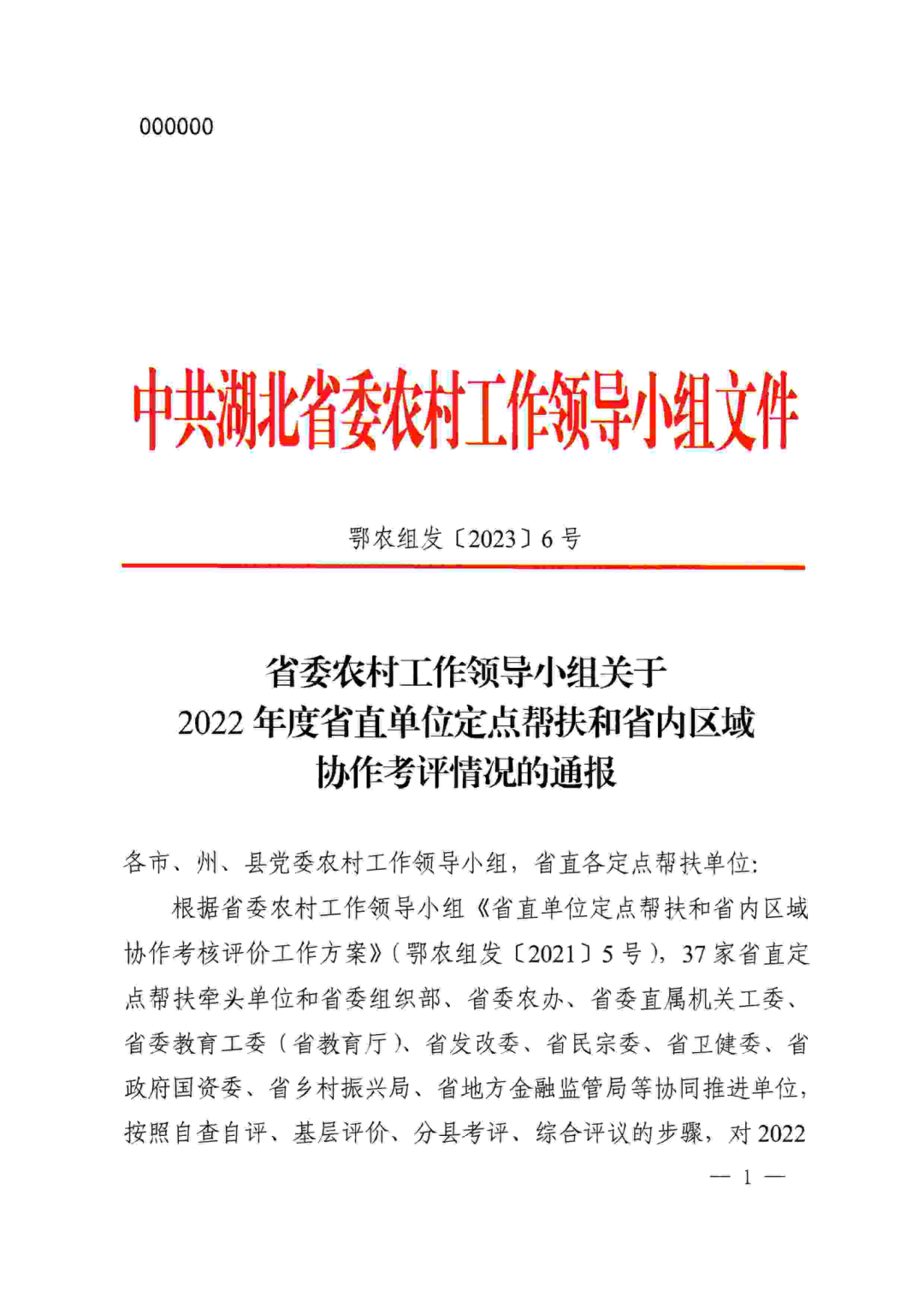 詳見《關于2022年度省直單位定點幫扶和省內區域協作考評情況的通報》(鄂農組發〔2023〕6號)