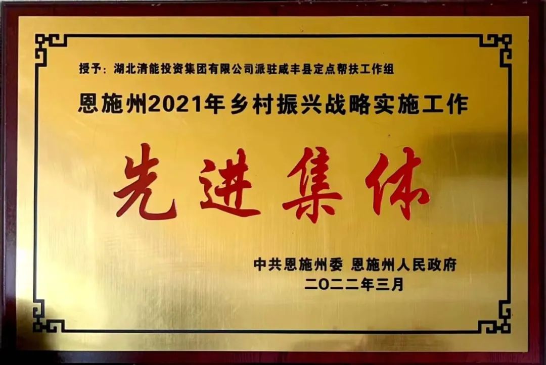 據悉,2021年,即進駐恩施州咸豐縣朝陽寺鎮五龍坪村首年,清能集團鄉村振興工作隊便獲得中共恩施州委、恩施州人民政府授予的“恩施州2021年鄉村振興戰略實施工作先進集體”稱號。
