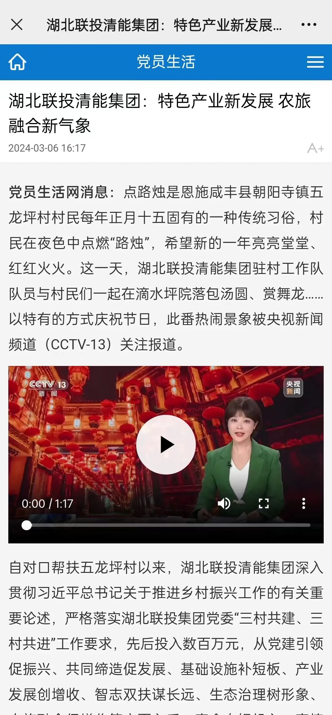 此外,湖北日報、長江日報、長江云、黨員生活雜志也關注湖北聯投清能駐村幫扶最新工作動態。
