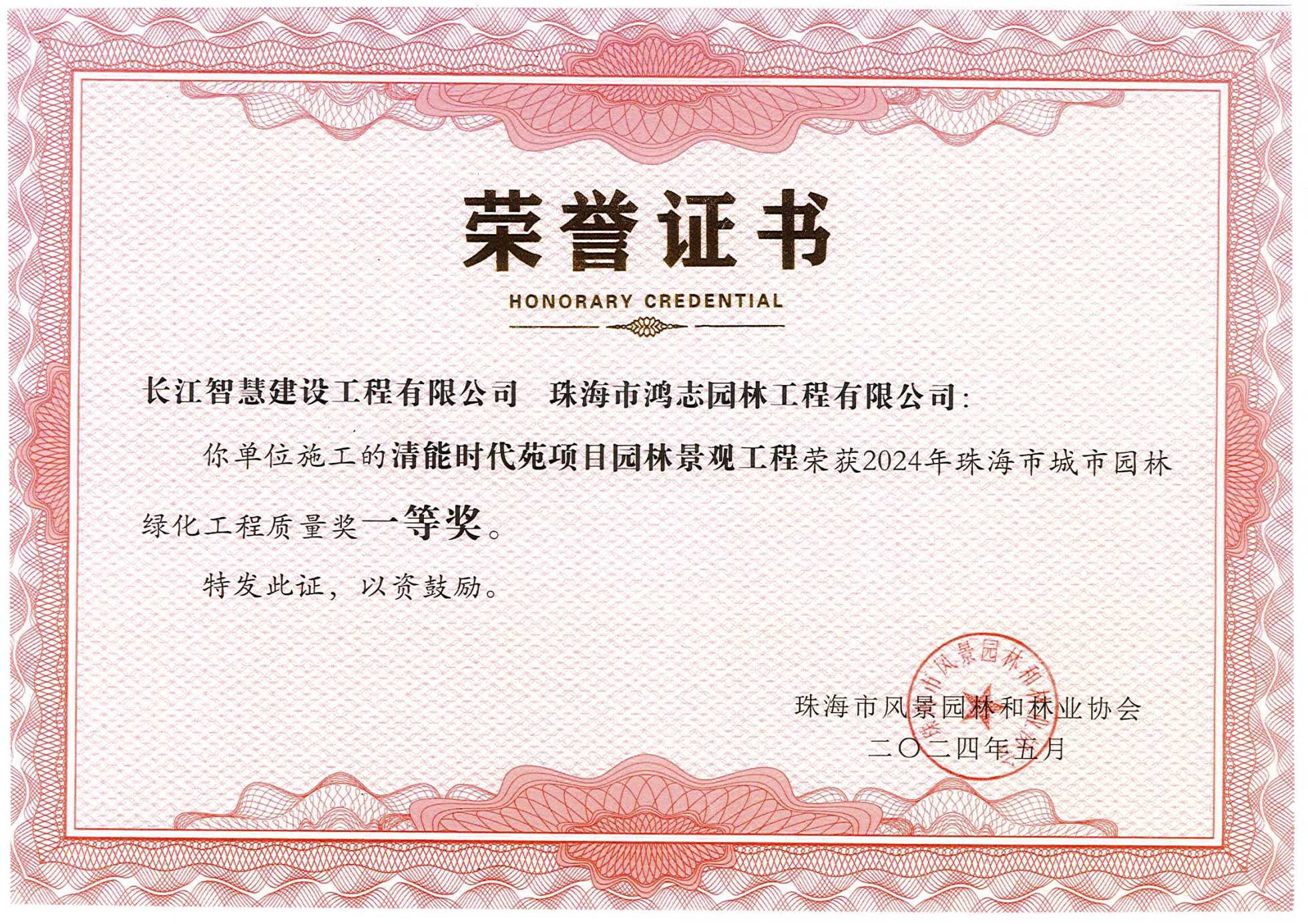 珠海市城市園林綠化工程質(zhì)量獎一等獎